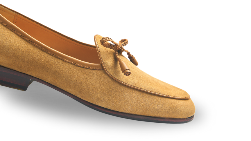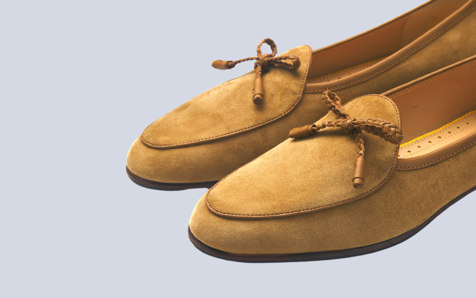 The Cashmere Bow loafer brings a touch of femininity to classic style. The soft cashmere suede and delicate bow detail make it perfect for those who appreciate subtle luxury. Whether for casual or formal occasions, this loafer adds a refined touch to any outfit.