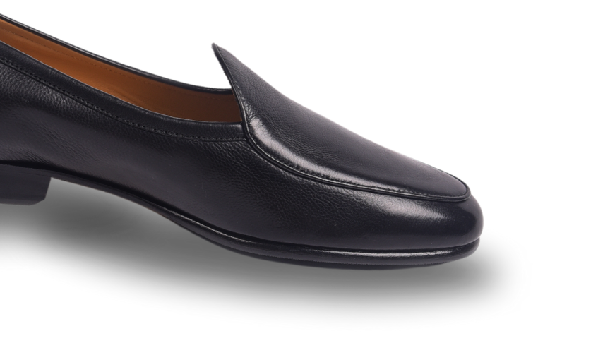 The Classic Black loafer offers a sophisticated take on the traditional apron style. Its deep black hue and fine Nappa leather make it a versatile choice for any occasion, from business meetings to evening events. This loafer is the epitome of timeless elegance, designed for the discerning gentleman.