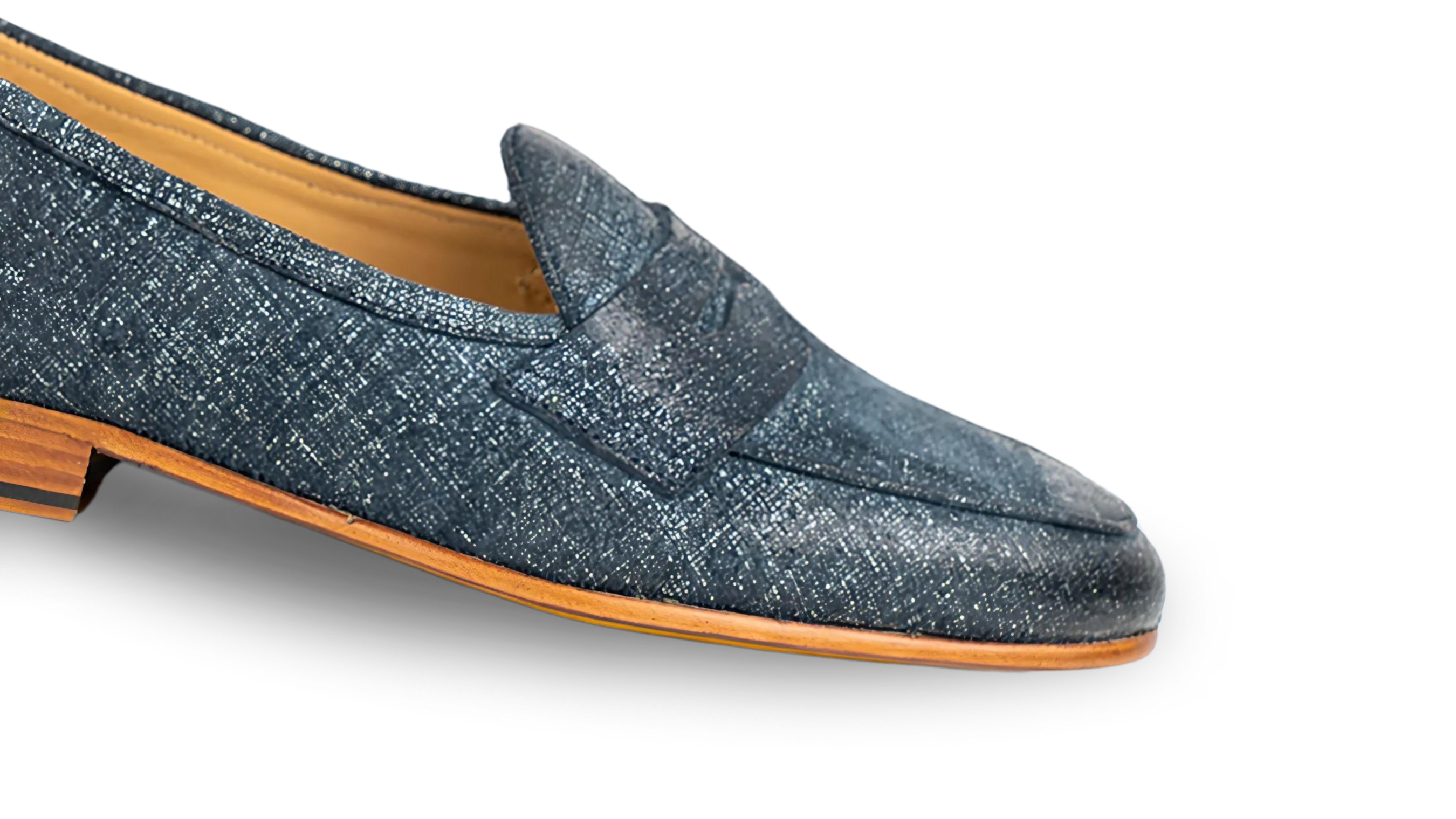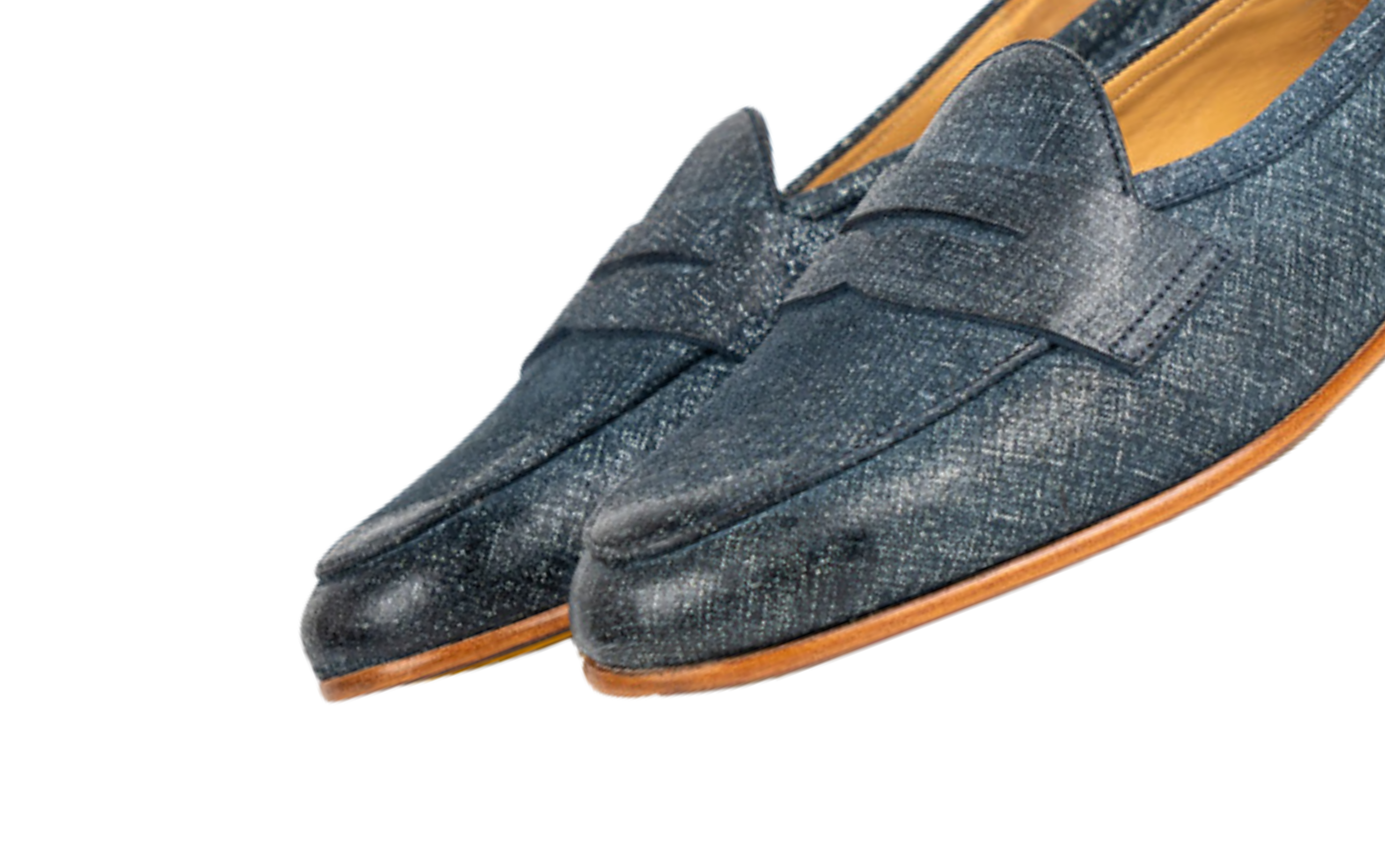 The Denim Penny - Flex loafer offers a unique take on the classic penny loafer. Made from high-quality Nappa leather, it features a leather and rubber forepart sole for optimal comfort and durability. Perfect for those who appreciate a blend of classic and contemporary styles.