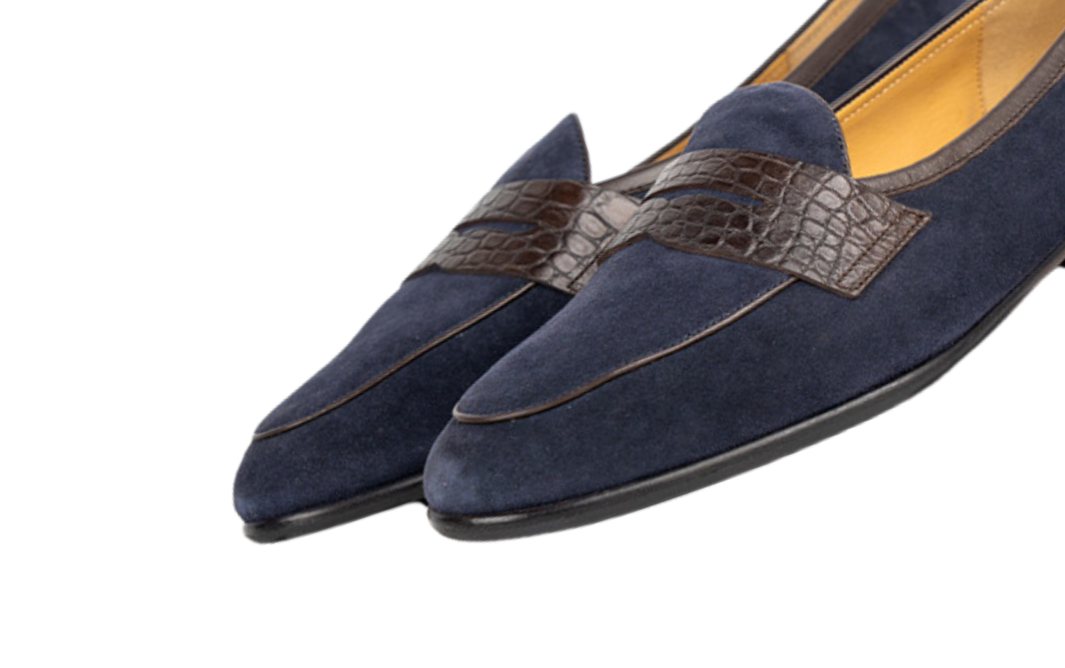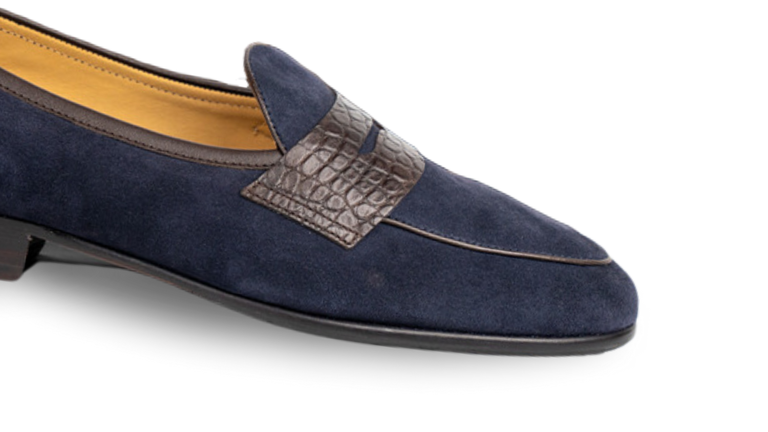 The Navy Croco Penny loafer combines the timeless penny design with the luxury of croco-patterned suede. Its deep navy color adds a touch of modern sophistication, making it perfect for those who appreciate a blend of classic style and contemporary flair.