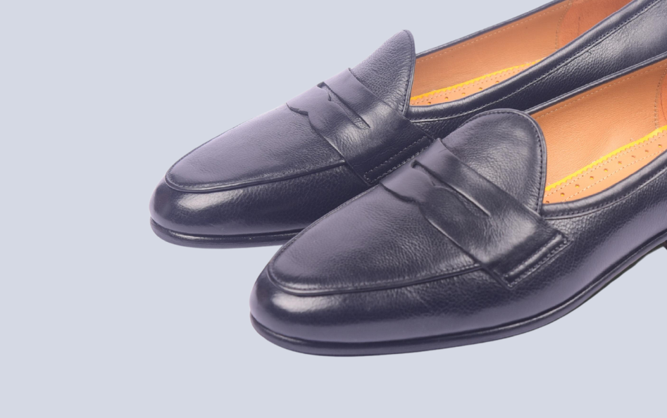 The Navy Penny loafer combines the elegance of Nappa leather with a sophisticated navy hue. Its leather and rubber forepart sole ensures comfort and longevity, making it a dependable choice for the modern gentleman. Perfect for those who appreciate subtlety with a touch of luxury.