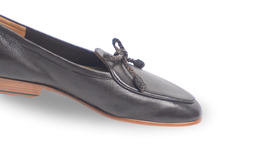 The Unlined Bow - Flex loafer is designed for the ultimate in comfort. Crafted from super soft Nappa leather, it features a leather and rubber forepart sole that provides flexibility and support. Perfect for those who seek both style and comfort in their footwear.